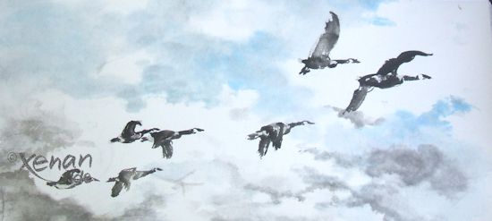 | Drei mal Gans - Three geese (2009) 56 x 62 cm Privatbesitz |